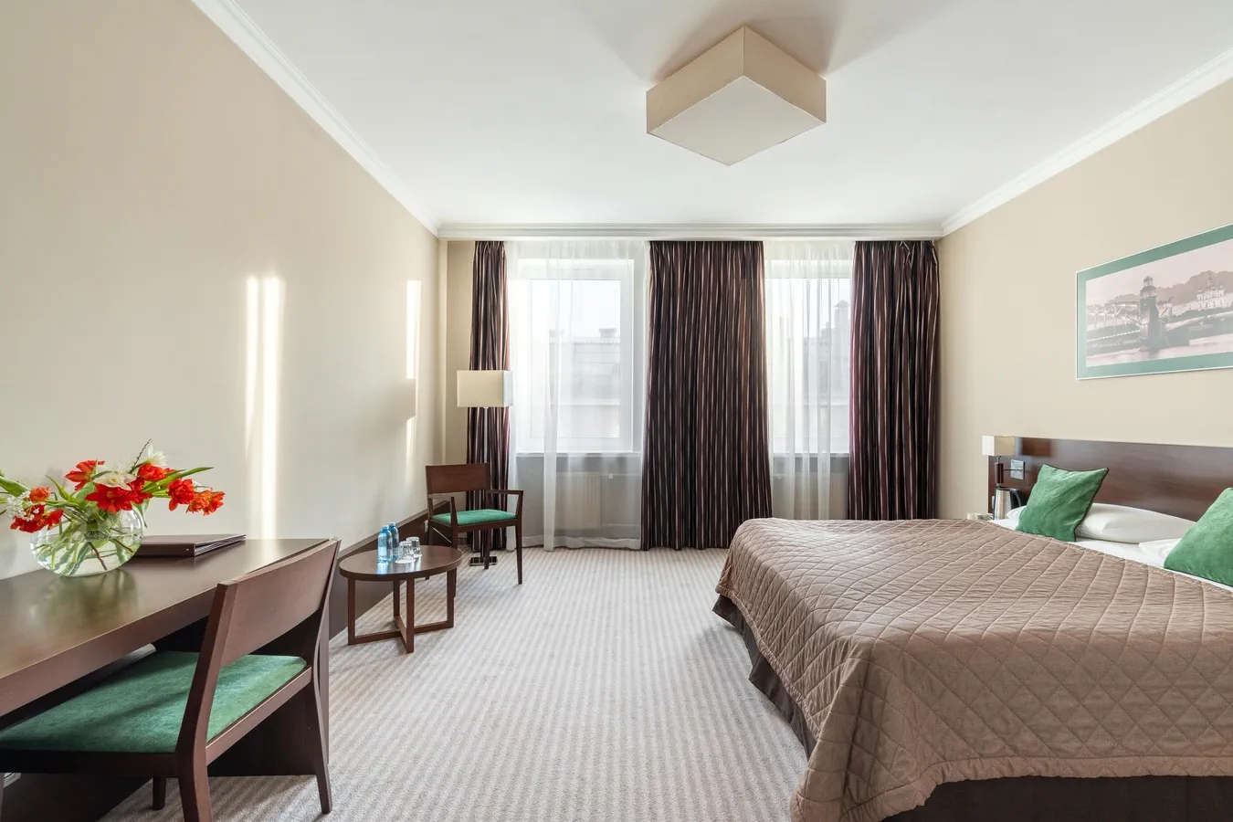 Начните день со вкусного завтрака, исследуйте город, а вечером насладитесь бокалом вина или освежающим коктейлем в лаундже отеля. Проведя в Санкт-Петербурге день, полный удивительных открытий, вы сможете расслабиться в уютном элегантном номере с круглосуточным обслуживанием и удобствами в номере.